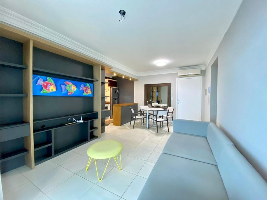 Apartamento composto por dois dormitórios sendo um suíte+ banho social, cozinha, área de serviço, amplo living, mobiliado, sacada separada com vista panorâmica para o mar. Edifício 100% pastilhado, com gás central, água quente, hidrômetro, individual, elevador digital, portão e porteiro eletrônico.