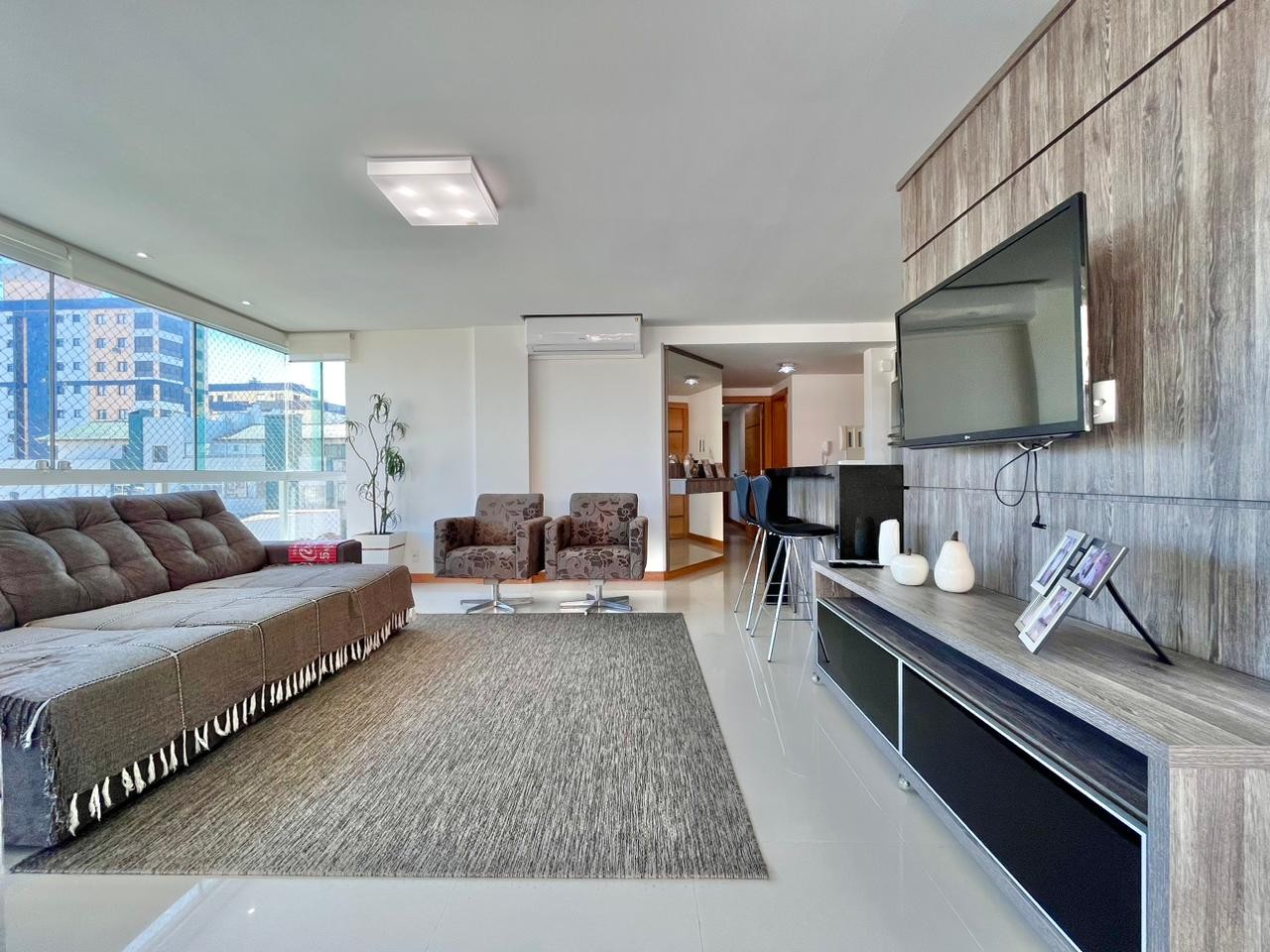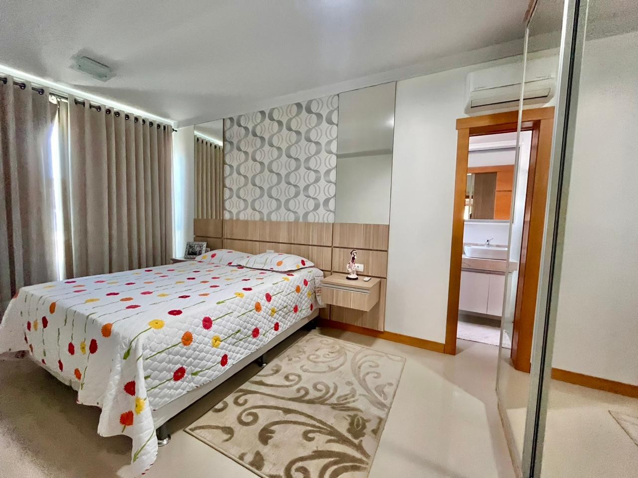 3 amplos quartos sendo uma suíte, totalmente mobiliado e decorado,