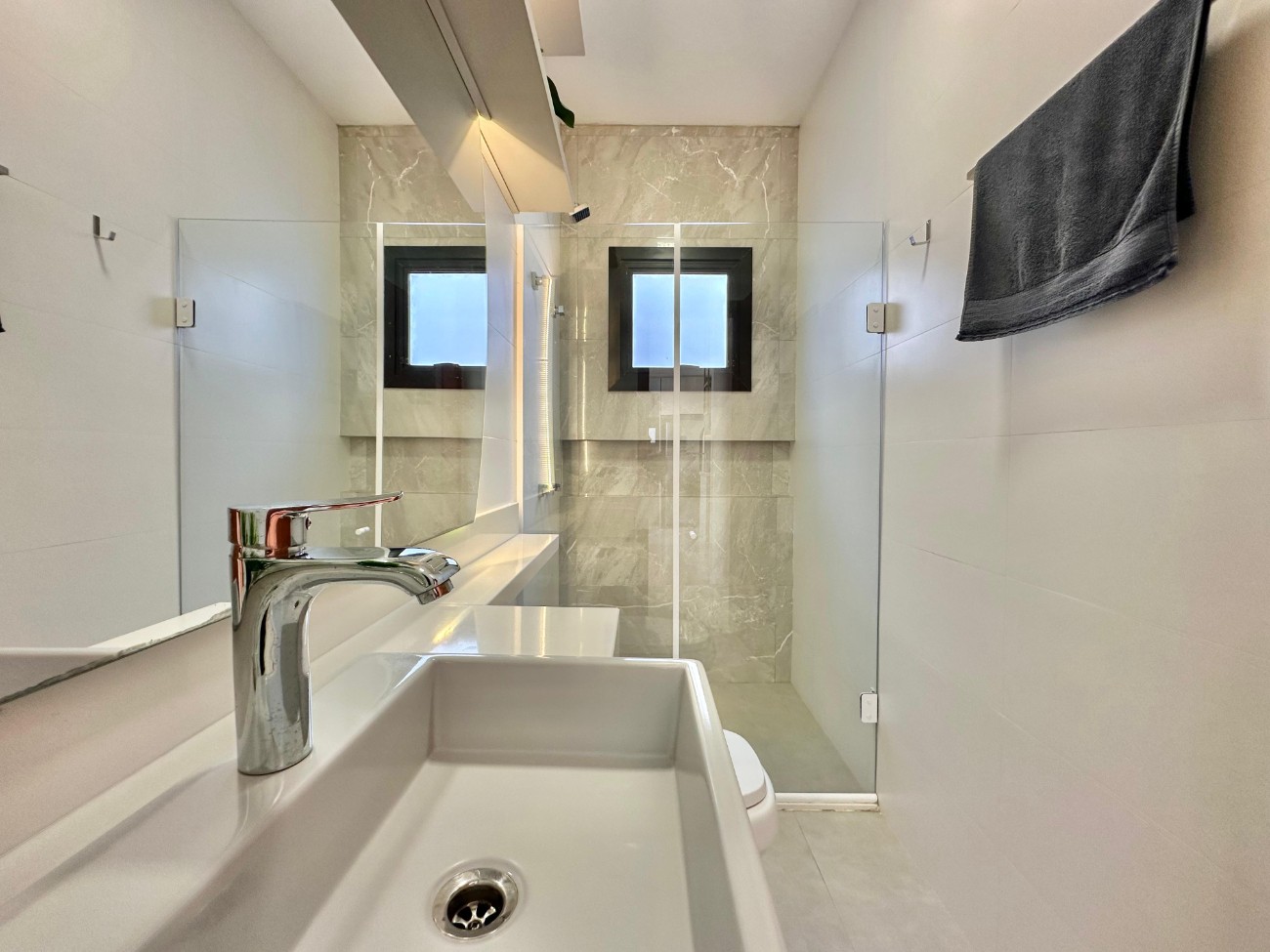 Uma casa nova, com pátio, piso em porcelanato, aberturas em alumínio e espera para split. Pronta para você morar ou veranear com a família e amigos.