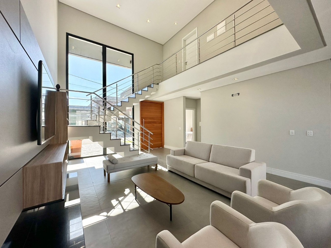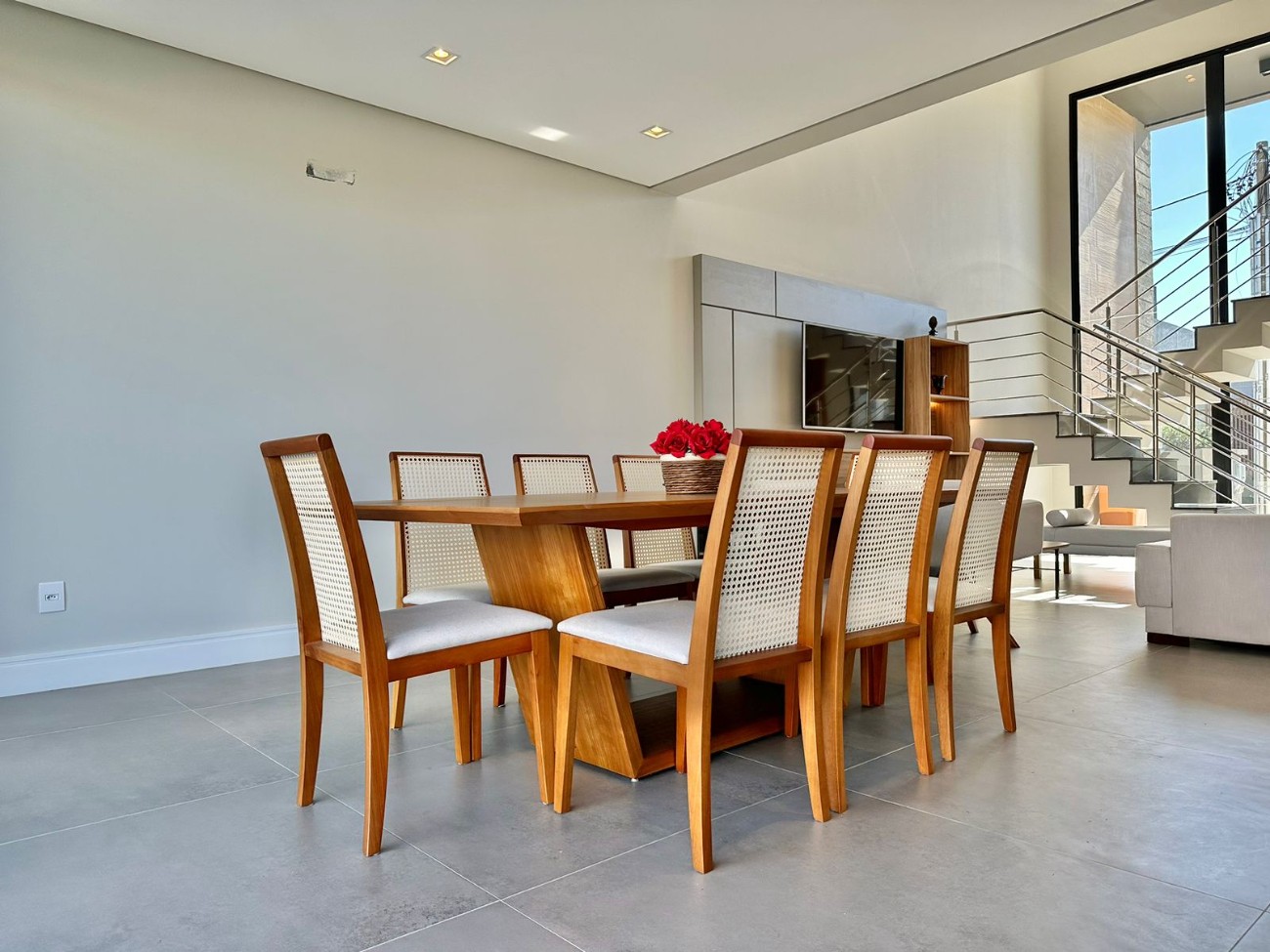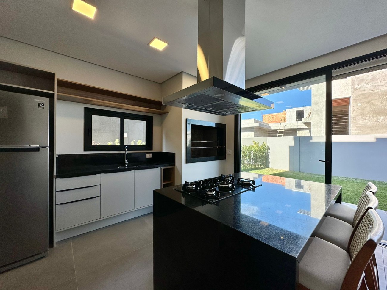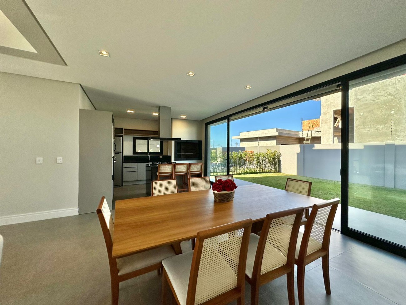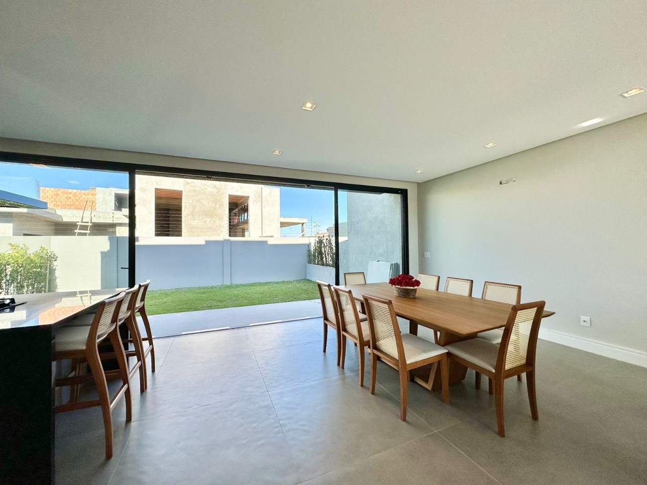 Excelente sobrado no condomínio Blue, bem iluminado e ventilado, novo, composto por 04 suítes individuais, lavabo, amplo living pé direito elevado, amplo pátio atrás fechado, mobiliado pronto para ocupar, cozinha toda montada, lavanderia separada, água quente, espera ar split todos ambientes, moderno, piso em porcelanato, no condomínio que mais cresceu nos últimos anos, com uma infra estrutura de lazer completa para você aproveitar seus momentos de lazer com sua família.