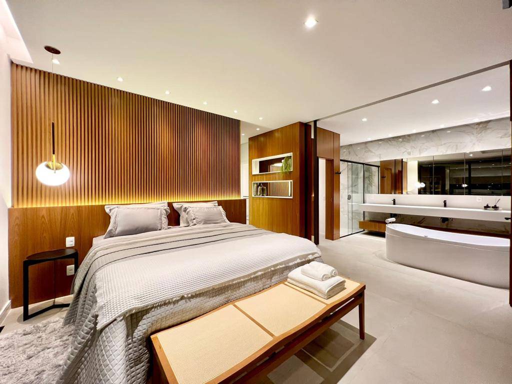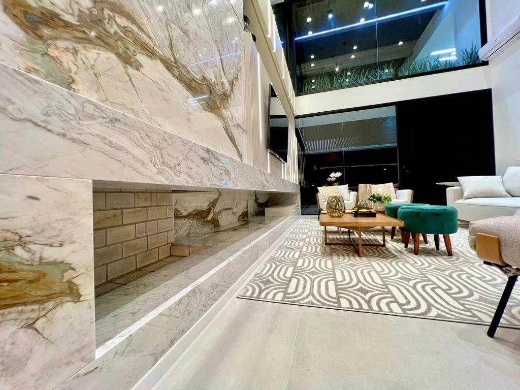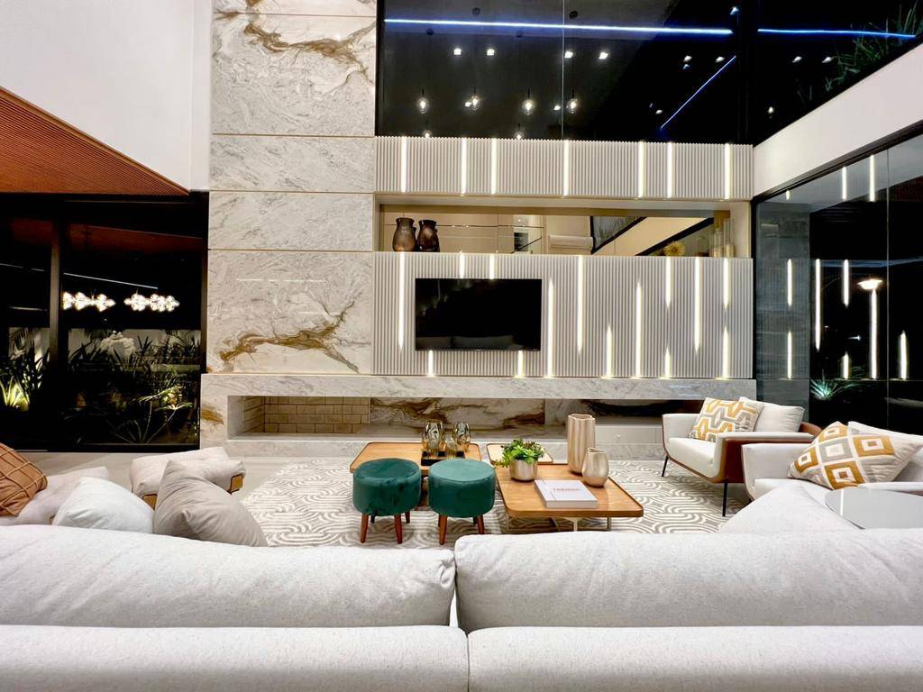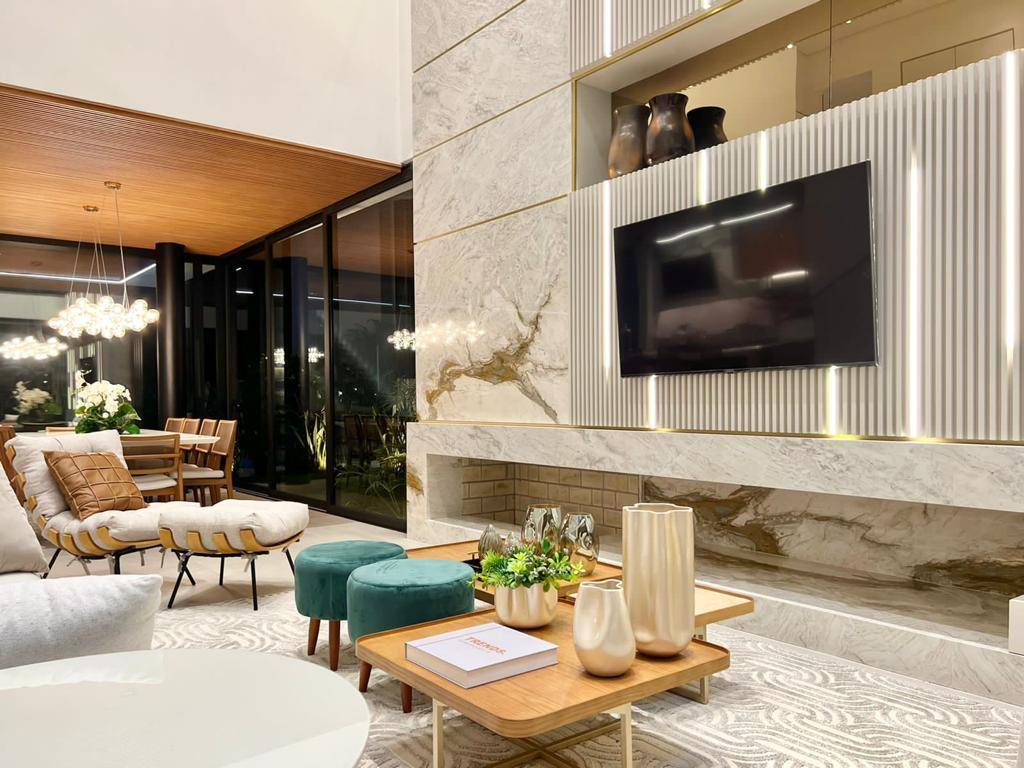 Magnífico sobrado composto por 5 suites, banheiro social, lavabo, amplo living, churrasqueira, sala de jantar, sala de estar com lareira, aberturas em pvc preto, pé direito duplo, casa finamente mobiliada e decorada, piscina privativa com iluminação em led.